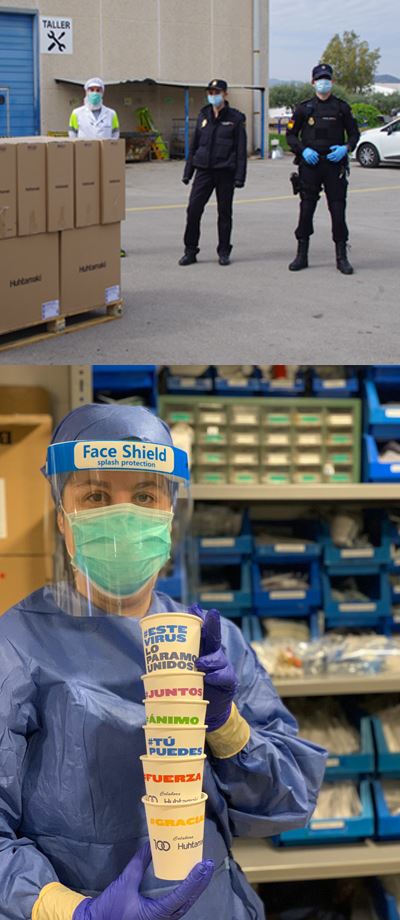 Desde la planta de Nules (Castellón), hemos colaborado además aportando productos monouso a instituciones y organizaciones locales como la Consellería de Sanidad, Cruz Roja, Policía Nacional y Cáritas. Más de 650.000 unidades de producto para apoyar la lucha contra el coronavirus, incluyendo una edición especial de vasos de papel con mensajes esperanzadores y optimistas.