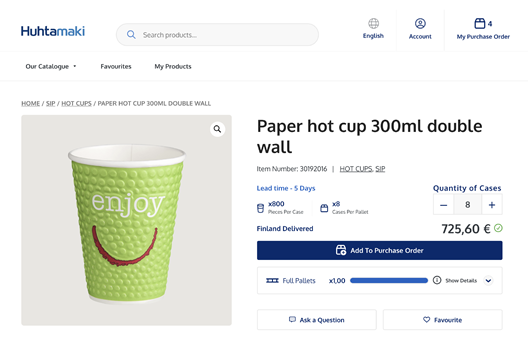 Huhtamaki har öppnat en ny kundportal för att göra livet lättare för dig. I kundportalen finner du snabbt all produktinformation du behöver. Det kan gälla mått på en produkt, information om paketering eller kvalitetscertifikat. Allt finner du i kundportalen.