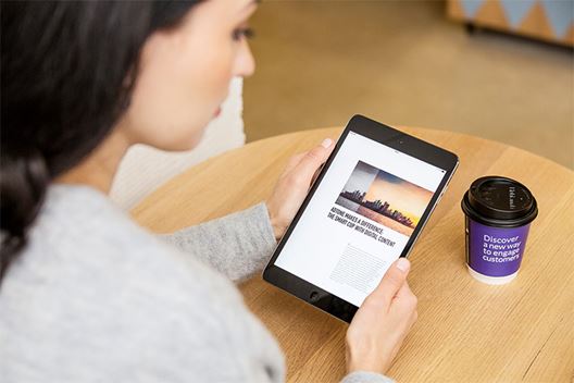 普乐包装Adtone纸杯是高效的宣传媒体。 消费者与咖啡杯互动的短短几分钟,就注意到上面印刷的内容。 只有很少的其他沟通渠道能与消费者如此接近。 在普乐包装Adtone™纸杯的实际广告活动中,点击率(CTR)从14%到30%以上不等。
